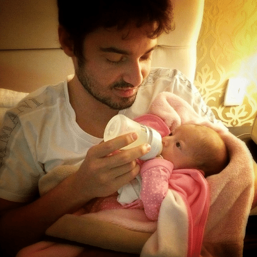 Ela saiu e eu continuei a dar a mamadeira a minha